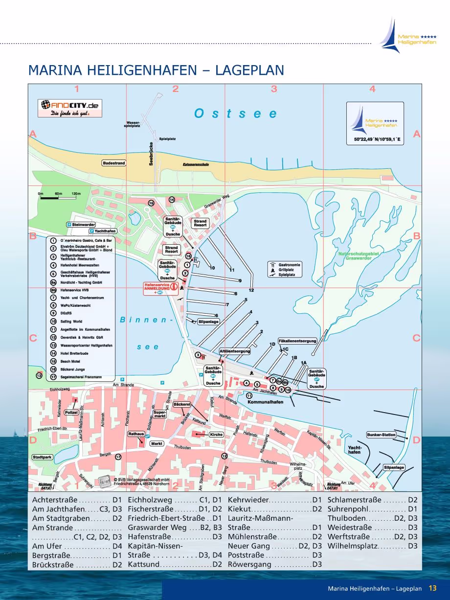 Fahren Sie auf der Autobahn A1, bis zur Abfahrt „Heiligenhafen Mitte“, biegen Sie am Ende der Abfahrt rechts auf die Bergstraße, in Richtung Heiligenhafen, ab. Folgen Sie der Bergstraße bis zur Höhe Stadtpark und biegen links in die Lauritz-Maßmann-Straße ab. Folgen Sie dem Verlauf der Straße, bis diese in der Rechtskurve in die Straße am Strande übergeht. An der nächsten Ampelkreuzung biegen Sie links, auf den Steinwarder Damm, ab. Folgen Sie der Straße, bis zum beschrankten Parkplatz auf der rechten Seite. An der Schranke klingeln Sie bei der Segelmacherei OLEU, fahren auf das Sanitärgebäude zu und biegen dann links ab. Auf der rechten Seite befinden sich die Kurzzeit-Parkplätze (siehe Stadtplan KzP) zum Be- und Entladen. Hier haben Sie 1 Stunde Zeit, Ihr Fahrzeug zu entladen. Die Charteryachten liegen an Steg 12.